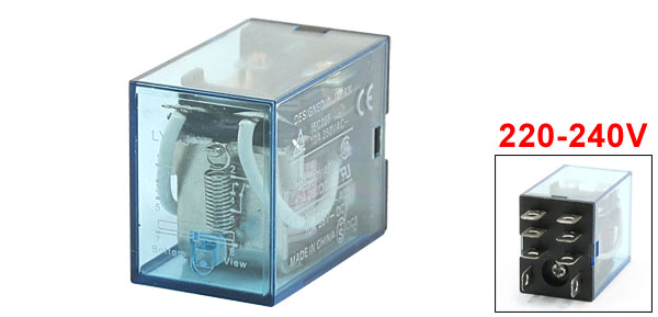Clear Blue Shell 220-240V AC Coil Voltage 8 Pin 2 Pole Power Relay LY2-J