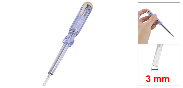 Product Name Electroprobe Voltage AC100-500V Casing Material Plastic Slotted Bit Width 3mm/0.11" Size(Approx.) 14.2 x 1.3cm/5.6" x 0.5"(L*Dia.) Color Clear Blue Weight 18g Package Included 1 x Electroprobe  - Reviews