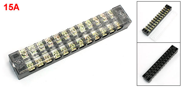 Clear Cover 15A Dual Row 12 Pole Barrier Terminal Strip Cable Connector