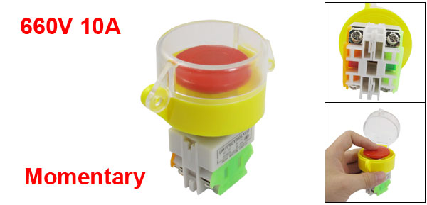Product Name Push Button Switch Contact Type 1 NO(Normally Open) + 1 NC(Normally Close) Action Type Non Latching Ith 10A Ui 660V Protection Cover Diameter 54mm/2.1" Mounting Hole Dia 22mm/0.8" Fit Panel Thickness(adjustable) 5mm/0.19".Max Button Diameter 38mm/1.4" Total Size 8 x 5.4 x 2.9cm / 3.1'' x 2.1'' x 1.1"(L*W*T) Main Material Plastic, Metal Main Color Red, White, Yellow Weight 64g Package Content 1 x Push Button Switch - Reviews