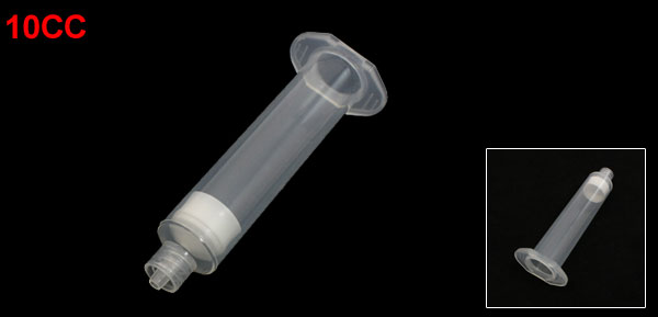 Product Name Dispenser Barrel Material Plastic Color Clear Capacity 10CC Luer Lock Tip Dia. 10mm/ 0.4" Tube Size 7.5 x 1.8cm / 2.95" x 0.7"(L*D) Weight 7g Package Content 1 x Syringe Dispenser Barrel