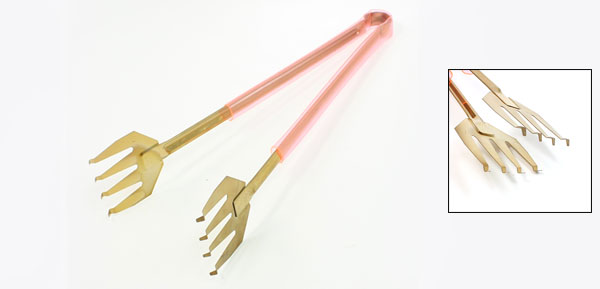 Clear Pink Handle Stainless Steel Tin Soldering Clip Gold Tone