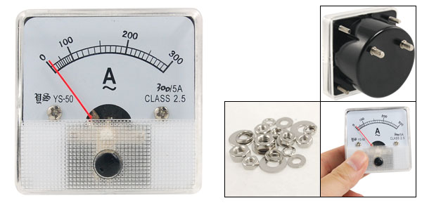 Product Name Analog Ammeter Model YS-50 Measuring Current Range AC 300A Accuracy Class 2.5 Meter Face Size(Approx.) 5 x 5 x 1.1cm/2" x 2" x 0.4" (L*W*T) Thread Size 0.4 x 0.8cm / 0.16" x 0.3"(D*L) 0.25 x 1cm / 0.1" x 0.31"(D*L) Base Diameter 4.3cm/1.7" Overall Depth 3.2cm/1.3" Screw Spacing 2.3cm/0.9" 3.9cm/1.5" Color Black, White Net Weight 61g Package Content 1 x Analog Ammeter Several Installing Parts - Reviews