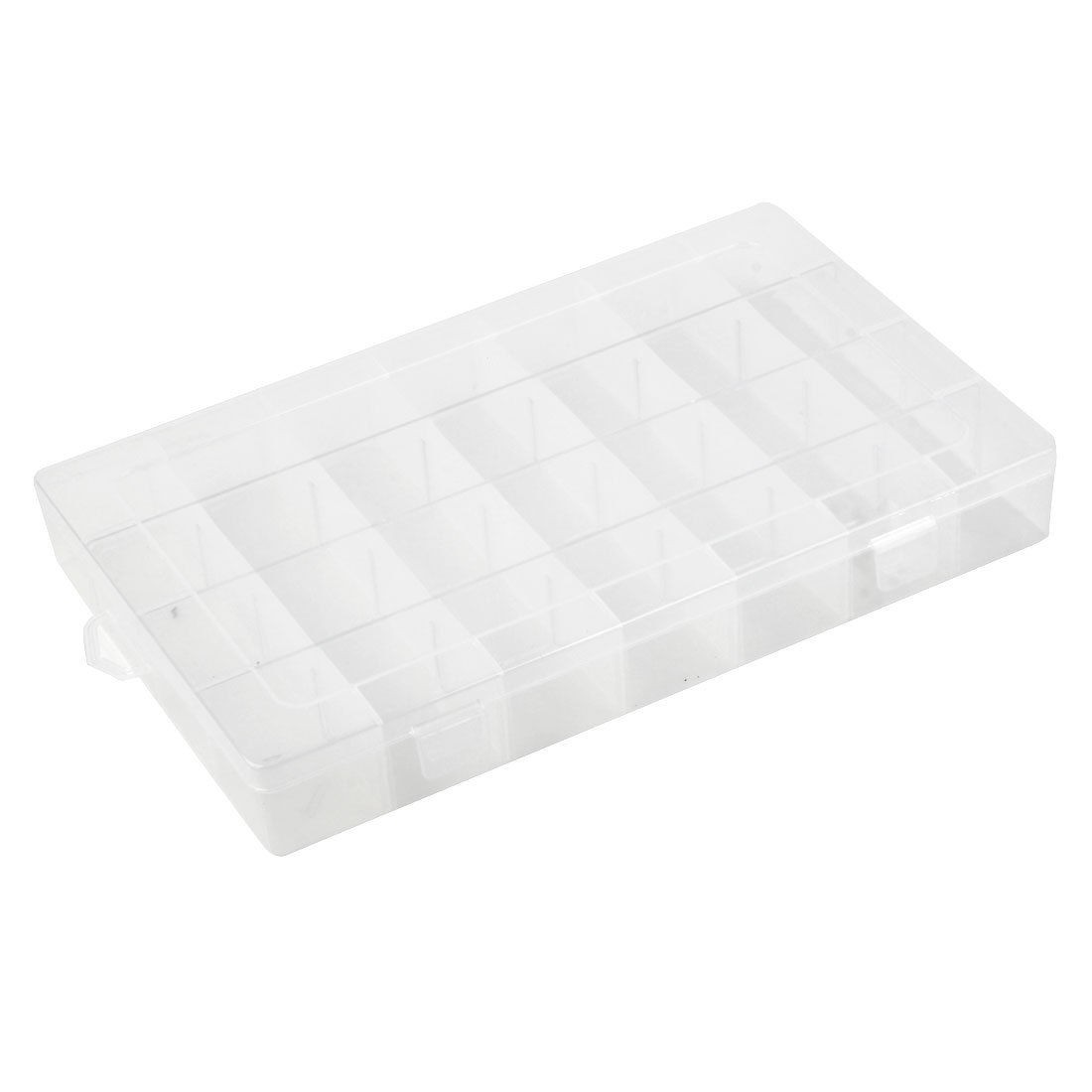 DetailsClear White 28 Slots Electronic Components Buttoned Case Box 34.5X21X4.8cm  Product Name Electronic Components Case Compartments Quantity 28 Each Compartment Size 4.7 x 5.2cm / 1.9" x 2"(L*W) Overall Size 34.5 x 21 x 4.8cm / 13.6" x 8.3" x 1.9"(L*W*H) Color Clear White Material Plastic Net Weight 435g Package Content 1 x Electronic Components Case
