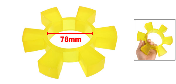 Product Name Coupling Cushion Material Polyurethane (PU) Petal Number 6 Bore Diameter (Approx.) 78mm / 3 1/16"(3.07") External Diameter 165mm / 6 1/2"(6.5") Thickness 25mm / 1" Color Clear Yellow Weight 311g Package Content 1 x Coupling Cushion - Reviews