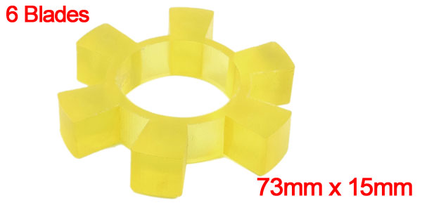Product Name Spider Coupling Washer for Water Pump Coupling Material Rubber Bladed Number 6 Center Diameter 38mm /1.5“ Each Blade Size 19 x 15 x 15mm /0.75" x 0.6" x 0.6"(L*W*T) Total Size 73 x 15mm/2.9" x 0.6"(D*T) Color Clear Yellow Weight 32g Package Content 1 x Spider Coupling Washer - Reviews