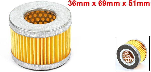 Product Name Air Filter Total Size 6.9 x 3.5 x 5.1cm/2.7" x 1.4" x 2"(OD*Inner Dia*H) Material Metal, Filter Paper Color Orange, Gray, Silver Tone Weight 46g Package 1 x Air Filter - Reviews