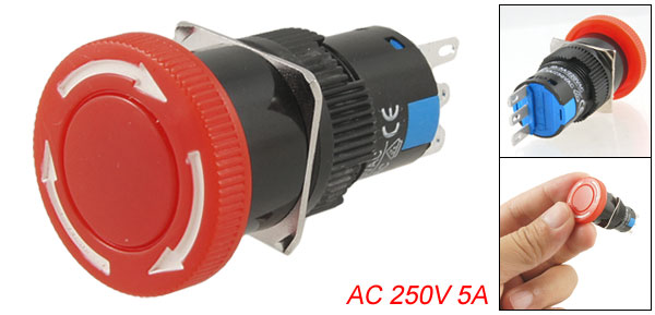 Item Name Push Button Switch Type Mushroom 1NO 1NC Type Voltage AC 250V 5A Ith AC 220V 5A Button Color Red Button Diameter 2.3cm/ 0.9" Size 4.5 x 2.3cm / 1.8" x 0.9" (L*D) Material Plastic, Metal Net Weight 9g Package Content 1 x Push Button Switch - Reviews