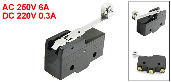 Product Name Limit Switch Model No. CM-1703 Terminals 3 Screw Terminal Actuator Action Momentary Actuator Type Long Roller Hinge Lever Contact Configuration 1NO,1NC(SPDT) Rating Voltage & Current AC 250V 6A