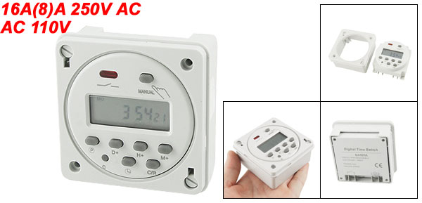 Product Name Digital Time Swicth Model Cn101A Material (External) Plastic, Metal Color White Dispaly Screen LCD Capacity 16A(8)A 250V AC Power Range AC 110V Min. Switching Time 1min Dimension 7.2 x 7.2 x 3.5cm / 2.8" x 2.8" x 1.4" (L*W*T) Weight 101g Package Content 1 x Timer - Reviews