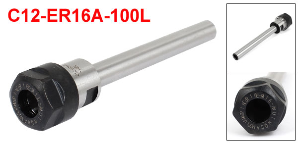 C12-ER16A-100L Fit for ER16 Collet Material Metal Color Silver Tone , Black Shank Dia 12mm/ 0.5" Shank Hole Inner Dia 7mm/ 0.28" Shank Length 100mm/ 4" Nut Hole Dia 13mm/ 0.5" Hex Width 25mm/ 1" Overall Size 135 x 28 mm / 5" x 1.1" (L*Max.D) Net Weight 132g Package Content 1 x Straight Collet Chuck - Reviews