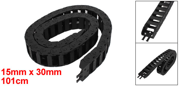 Product Name Cable Drag Chain Material Plastic Internal Size 15 x 30 x 10mm/ 0.6" x 1.2" x 0.4"(L*W*H) External Size 40 x 20mm/ 1.6" x 0.79"(W*H) Bending Radius R 7cm/ 2.8" Total Length 101cm/ 3.3Ft Color Black Net Weight 300g Package Content 1 x Cable Drag Chain - Reviews