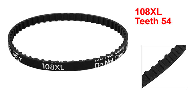 Product Name Timing Belt Model 108XL Number of Teeth 54 Code Number 025 Teeth Pitch 5.08mm / 0.2" Belt Width 6.4mm / 0.25" Pitch Length 274.35mm/ 10.8" Material Rubber Color Black Weight 7g Package Content 1 x Timing Belt - Reviews