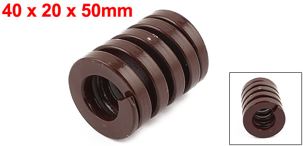Product Name Die Spring Size 40 x 20 x 50mm/ 1.6" x 0.8" x 2"(OD* Inner Dia * L) Materials Chromium Alloy Steel Color Coffee Color Net Weight 239g Package Content 1 x Die Spring - Reviews