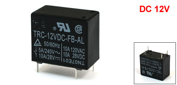 Product Name Power Relay Model TRC-12VDC-FB-AL Coil Voltage DC 12V Contact Capacity 10A 28VDC/5A 240VAC Contact Type SPST Terminal Number 4 Pin Main Body Size(Approx.) 18 x 10 x 15mm/ 0.7" x 0.39" x 0.6"(L*W*H) External Material Plastic & Metal Main Color