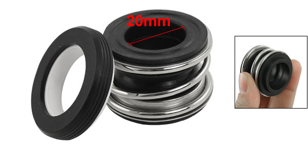 DetailsCoil Spring Rubber Bellows 20mm Inner Dia. Water Pump Mechanical Seal  Product Name Mechanical Seal Internal Diameter 20mm / 0.79" Overall Size 34 x 36mm/ 1.34'' x 1.42" (H*D) Material Carbon, Rubber, Metal, Ceramic Color Black, Silver Tone Net Weight 43g Package Content 1 x Mechanical Seal