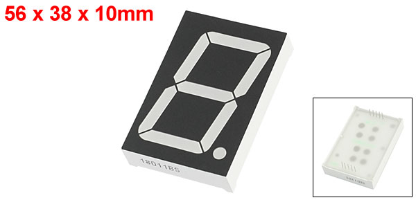Product Name LED Digital Display Tube Digital Display 1 Digit Emitted Color Red Pin Number 10 Pin Pitch 2mm/0.08" Type Common Anode Size(Not Include Pin) 56 x 38 x 10mm/ 2.2" x 1.5" x 0.4" (L*W*H)