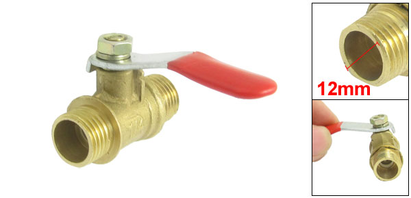 Product Name Gas Ball Valve Material Brass, Plastic Color Gold Tone, Red Thread Diameter 12mm/0.47"(Outside) Body Overall Size 35 x 16mm/1.37" x 0.63"(L*Max.D)