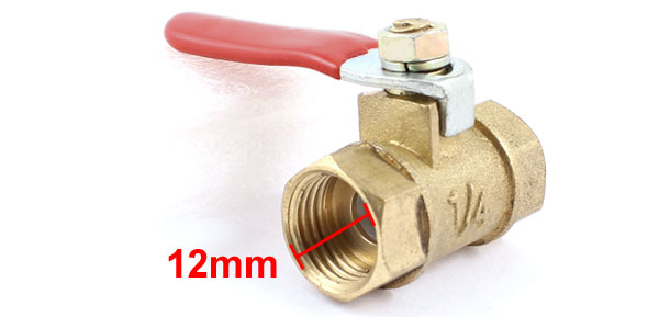 DetailsCompressor Lever Handle 12mm x 12mm Female Screw Ball Valve  Product Name Gas Ball Valve Material Brass, Plastic Color Brass Tone, Red Female Thread Diameter 12mm/ 0.47" Body Overall Size 32 x 15mm/ 1.26" x 0.59"(L*D) Lever Size 45 x 11mm/ 2" x 0.4"(L*W) Weight 30g Package Content 1 x Compressor Gas Valve
