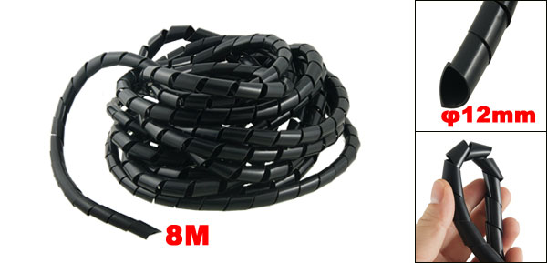 Product Name Spiral Wrap Material Polyethylene Color Black Total Length(Approx.) 8M / 26.2Ft Outside Diameter 12mm / 0.47'' Thickness 0.5mm / 0.019'' Net Weight 149g Package Content 1 x Spiral Wrap - Reviews