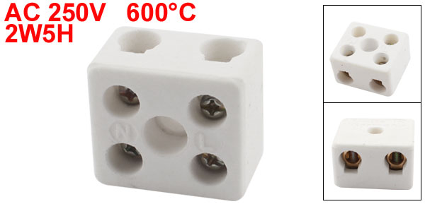 Product Name Ceramic Terminal Block Type 2W5H Rating Voltage AC 250V Max. Withstand Temperature 600°C Total Size 32 x 28.5 x 20mm/1.2" x 1.1" x 0.79"(L*W*T) Materials Ceramic Main Color White Net Weight 37g Package Content 1 x Ceramic Terminal Block - Reviews