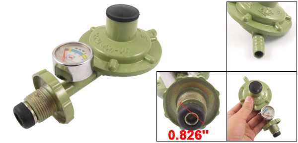Product Name Gas Regulator Valve Material Metal Main Color Olive Green Inlet Hole Pressure 0.03 -1.56 MPa Outlet Hole Pressure 2.8± 0.5 KPa Rated Flow 0.6-1.2 M³/H Closed Pressure <=3.50 KPa Working Tenperature -20~45°C Thread Diameter 21mm/0.826'' Hose Connector Outside Dia 9mm/0.354'' Total Size 165 x 72 x 50mm/ 6.5'' x 2.8'' x 2'' (L*W*H) Net Weight 137g Package Content 1 x Gas Regulator Valve - Reviews