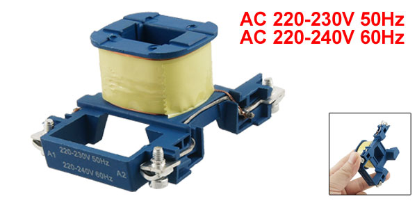 Bottom Size 7.5 x 5 x 1.2cm/3" x 2" x 0.47"(L*W*H) Top Size 3.7 x 3.2 x 2cm/1.45" x 1.25" x 0.78"(L*W*H) Middle Hole Size 1.8 x 1.5cm/0.7" x 0.6"(L*W) Color Blue, Copper Tone Weight 50g Package Content 1 x AC Contactor Coil - Reviews
