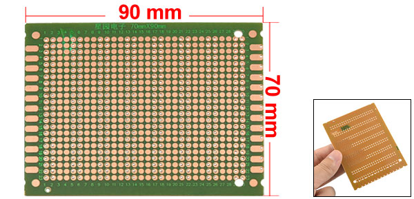 Product Name Universal PCB Board Hole Dia(Approx) 1mm / 0.039" Hole Pitch(Approx) 1.6cm / 0.06" Size(Approx) 70 x 90mm / 2.8" x 3.5"(L*W) Thickness(Approx) 1.2mm / 0.05" Material FR-4 Color Gold Tone, Green Net Weight 12g Package Content 1 x Universal PCB Board - Reviews