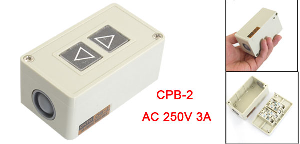 Product Name Push Button Switch Model CPB-2 Contact Type Momentary Material Plastic, Electric Parts Voltage/ Current AC 250V 3A Total Size (Approx.) 9 x 5 x 3.9cm/ 3.5" x 2" x 1.5" (L*W*H) Mount Hole Diameter 4.3mm/0.2" Color Gray, Black Net Weight 92g Package Content 1 x Push Button Switch - Reviews