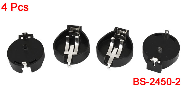 CR2450 SMT Plastic Cell Button Battery Socket Holder Case Black 4PCS