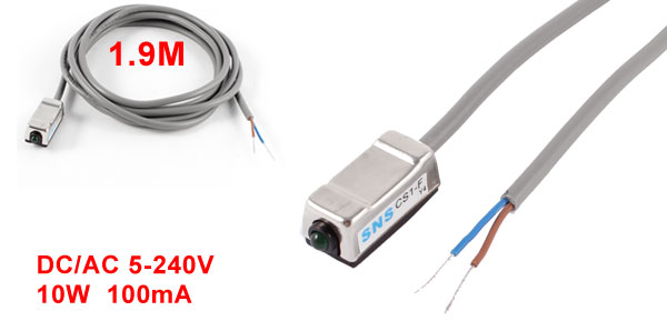 Product Name Magnetic Sensor Switch Use for Pneumatic Cylinder Model CS1-F Voltage DC/AC 5~240V Current 100mA Contact 10W Indicator light Green LED External Material Plastic, Aluminum Size 2.6 x 1.2 x 1.1 cm / 1" x 0.47" x 0.43" (L*W*H) Cable Length 1.9M / 6.2Ft Net Weight 46g Color Gray, Silver Tone, Black Package Content 1 x Magnetic Sensor Switch - Reviews