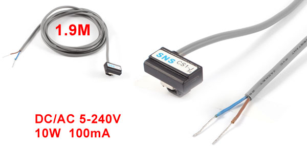 Product Name Magnetic Sensor Switch Use for Pneumatic Cylinder Model CS1-J Voltage DC/AC 5~240V Current 100mA Contact 10W Indicator light Red LED External Material Plastic Size 2.1 x 1.1 x 1.5 cm / 0.8" x 0.43" x 0.6" (L*W*H) Cable Length 1.9M / 6.2Ft Net Weight 35g Color Gray, Black Package Content 1 x Magnetic Sensor Switch - Reviews