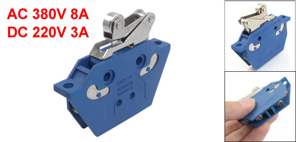 Product Name Limit Switch Model No. CSK1-11 Actuator Action Momentary Actuator Type Roller Lever, Automatic Reset Contact Type 2NO, 2NC, DPST Terminals Screw Terminals Rated Power AC 380V 8A DC 220V 3A Roller Size 9.5 x 4.3 mm / 0.4" x 0.2"(D*T) Overall Size 6.2 x 2.2 x 4.7cm / 2.4" x 0.9" x 1.9"(L*W*H) Mounting Holes Diameter 4mm / 0.2" Mounting Length 5.5 cm / 2.2" Material Metal, Plastic Color Blue, Silver Tone Net Weight 34g Package Content 1 x Limit Switch - Reviews