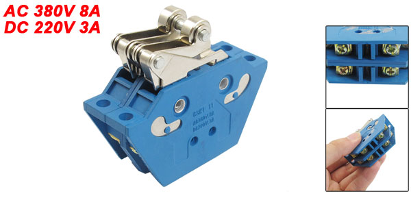 Product Name Limit Switch Model No. CSK1-22 Actuator Action Momentary Actuator Type Roller Lever, Automatic Reset Contact Type 2NO, 2NC, DPST Terminals Screw Terminals Rated Power AC 380V 8A DC 220V 3A Roller Size 9.5 x 4.3 mm / 0.4" x 0.2"(D*T) Overall Size 6.2 x 2.2 x 4.7cm / 2.4" x 0.9" x 1.9"(L*W*H) Mounting Holes Diameter 4mm / 0.2" Mounting Size 5.5 x 1 cm / 2.2" x 0.4"(L*W) Material Metal, Plastic Color Blue, Silver Tone Net Weight 58g Package Content 1 x Limit Switch - Reviews