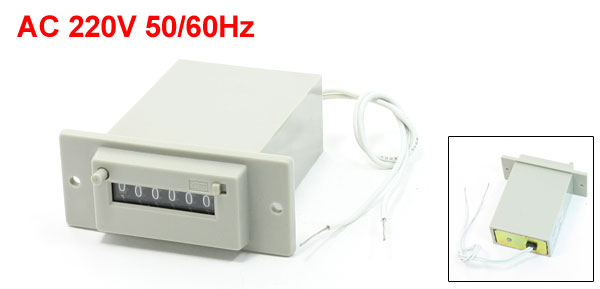 Product Name Electromagnetic Counter Model CSK6-DKW Input Power AC 220V 50/60Hz Digits 6 Wire Length 19cm/7.5" Panel Size 72 x 30mm/2.8" x 1.2"(L*W) Mounted Size 78 x 26 x 62m / 3.1" x 1" x 2.4"(L*W*T) Total Length 73mm/2.9" Fixing Hole Diameter 3.5mm/0.1" Fixing Hole Center Distance 62mm/2.4" External Material Plastic Color Gray Net Weight 120g Package Content 1 x Eectromagnetic Counter - Reviews