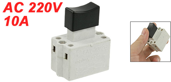 Product Name Electric Trigger Switch Application Cut-off Machine Model No. FA2-10/2B Action Type DPNO Technical Parameter AC 220V, 10(10)A Pillar Terminal Type 5mm Size 3.7 x 2.4 x 5cm/ 1.4" x 0.9" x 2" (L*W*H) Material Plastic Color Off White, Black Weight 30g Package 1 x Electric Trigger Switch - Reviews