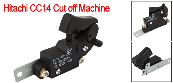 Product Name Trigger Switch Fit for Hitachi CC14 Cut off Machine Type SPST, NO with Lock Button Rating AC250V/7A 125V/14A Size 8 x 4.5 x 3cm / 3.1" x 1.8" x 1.2"(L*W*T) Material Plastic, Metal Color Black, Bronze Tone Weight 54g Package 1 x Trigger Switch for Hitachi CC14 (Non-OEM) - Reviews