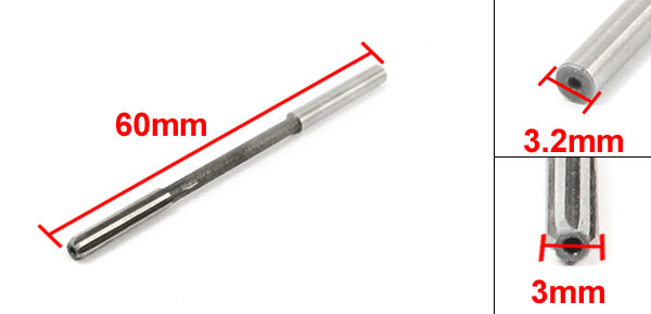 Product Name Straight Shank Machine Reamer Material HSS Flute Number 6 Cutting Diameter 3mm / 0.12" Shank Size 3.2 x 20mm/ 0.13" x 0.79"(D*L) Flute Length 21mm / 0.83" Total Length 60mm / 2.36" Color Gray, Silver Tone NetWeight 5g Package Content 1 x Straight Shank Machine Reamer - Reviews