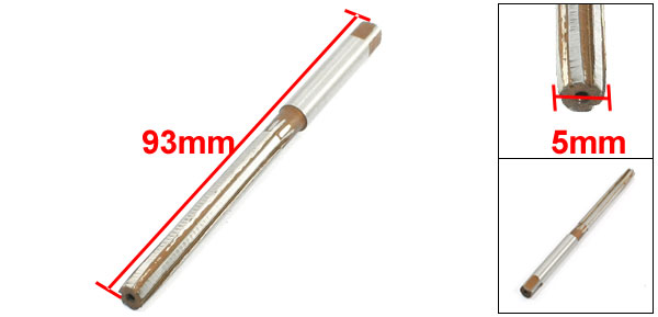 Product Name Tapered Reamer Material HSS Flute Number 6 Cutting Diameter 5mm / 0.2" Square Head Size 5 x 5mm/ 0.2" x 0.2"(L*W) Flute Length 56mm / 2.2" Shank Diameter 6mm / 0.24" Total Length 93mm / 3.7" Color Camel, Silver Tone NetWeight 14g Package Content 1 x Tapered Reamer - Reviews
