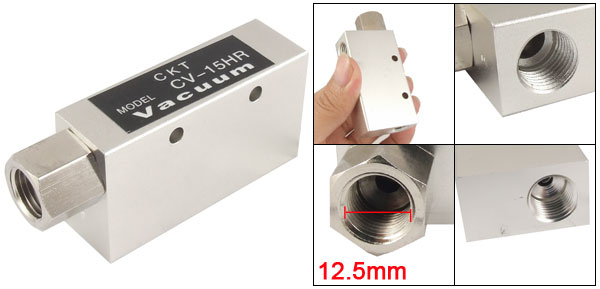 Product Name Vacuum Ejector Model CV-15HR Fluid Air Standard Supply Pressure 0.35MPa Max.Vacuum Pressure -87KPa Temperature 0-60°C Nozzle Diameter 1.5mm/0.06'' Thread Diameter 12.5mm/ 1/2" Total Size 78 x 34 x 20mm/3.1'' x1.3'' x 0.8'' (L*W*H) Material Metal Color Silver Tone Weight 133g Package Content 1 x Vacuum Ejector - Reviews