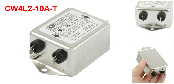 Product Name AC Power Line EMI Filter Model No. CW4L2-10A-T Working Voltage AC 115V/250V, 50/60Hz Rated Current AC 10A Working Temperature 40C Installing Hole Size(Approx) Distance: 75mm / 2.9"