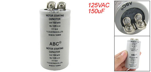 Product Name Motor Capacitor Housing Material Plastic Capacitance 150MFD(150uF) Working Voltage 125VAC Body Dimension 3.5 x 6.8cm/1.37" x 2.6"(D * H) Color Gray Weight 70g Package Content 1 x Motor Capacitor - Reviews