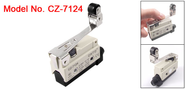 Product Name Limit Switch Model No. CZ-7124 Actuator Action Momentary Actuator Type Long Hinge Roller Lever Contact Type 1 NO, 1 NC, 1 Com(SPDT) Terminal Type Screw Terminals Ui 380V Ith 10A AC-15 Ue: 250V, le: 6A DC-13 Ue: 220V, le: 0.3A Roller Size 1.22 x 0.8cm / 0.48" x 0.3"(D*T) Actuator Size 6.8 x 1.15 x 2.7cm / 2.7" x 0.45" x 1.1"(L*W*H) Hole Dia 0.42cm / 0.165" Main Body Size 5.44 x 2.16 x 3.75cm / 2.1" x 0.85" x 1.5"(L*W*H) Overall Height 7.7cm / 3" Material Metal, Plastic & Rubber Color As Picture Show Net Weight 61g Package Content 1 x Limit Switch - Reviews