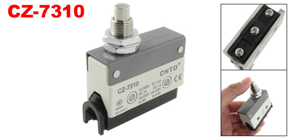 Product Name Limit Switch Model No. CZ-7310 Actuator Action Momentary Actuator Type Panel Mount Plunger Contact Type 1 NO, 1 NC, 1 Com(SPDT) Terminal Type Screw Terminals Ui 380V Ith 10A AC-15 Ue: 250V, le: 6A DC-13 Ue: 220V, le: 0.3A Threaded Dia 1.17cm / 0.46" Hole Dia 0.42cm / 0.165" Main Body Size 5.43 x 2.17 x 4.14cm / 2.1" x 0.85" x 1.6"(L*W*H) Overall Height 6.54cm / 2.57" Material Metal, Plastic Color As Picture Show Net Weight 83g Package Content 1 x Limit Switch - Reviews