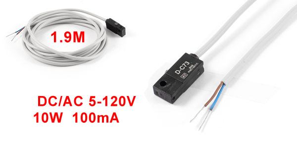 Product Name Magnetic Sensor Switch Use for Pneumatic Cylinder Model D-C73 Voltage DC/AC 5~120V Current 100mA Contact 10W Indicator light White LED External Material Plastic Size 2.6 x 1.2 x 0.8 cm / 1" x 0.47" x 0.3" (L*W*H) Cable Length 1.9M / 6.2Ft Net Weight 34g Color Gray, Black Package Content 1 x Magnetic Sensor Switch - Reviews