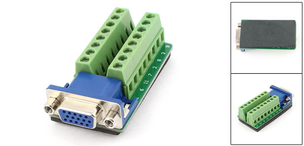 Product Name DB15 Adapter Tyle DB15 15pin Female Port to 2 Row 8 Positions Screw Terminals Design Screw Type Screw Dia 2mm/0.08" Total Size 63 x 30 x 20mm/2.5" x 1.2" x 0.8"(L*W*H) Material Metal, Electric Part Color Blue, Green, Silver Tone Weight 38g Package Content 1 x DB15 Adapter - Reviews