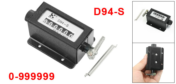 Product Name Pull Counter Model D94-S Digit Display 6 Range 0-999999 External Material Plastic Color Black Total Size 8.5 x 4.7 x 3.1cm/3.3'' x 1.9'' x 1.2'' (L*W*T) Spring Size 4.8 x 0.4cm/ 1.9" x 0.16" (L*D) Net Weight 92g Package Content 1 x Pull Counter - Reviews