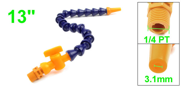 Product Name Coolant Pipe Design Round Nose, Flexible Thread Diameter 1/4 PT (12.3mm) Nozzle Size 7.6 x 3.1mm/ 0.30" x 0.12"(OD*Inner D) Overall Size 33 x 3cm / 13" x 1.2"(L*Max.W) Material Plastic Color Dark Purple, Orange Net Weight 36g Package Content 1 x Coolant Pipe - Reviews