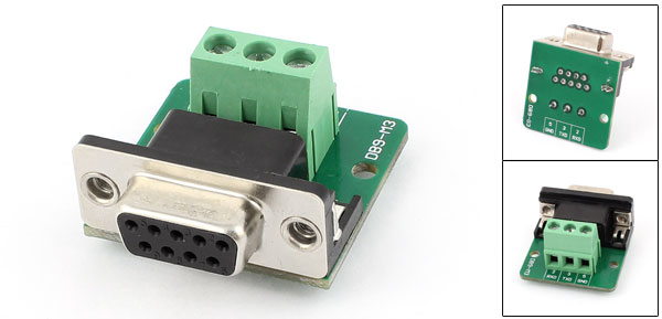 Product Name DB9 Adapter Type DB9 9PIN Female Adapter to 3 Position Termianl Breakout Board Design Riveting Tooth Type Total Size 35 x 30 x 15mm/1.4" x 1.2" x 0.6"(L*W*H) Mount Hole Dia. 3mm / 0.12" Mount Hole Center Distance 25mm / 1" Material Metal, Electric Part Color Black, Green Weight 17g Package Content 1 x DB9 Adapter - Reviews