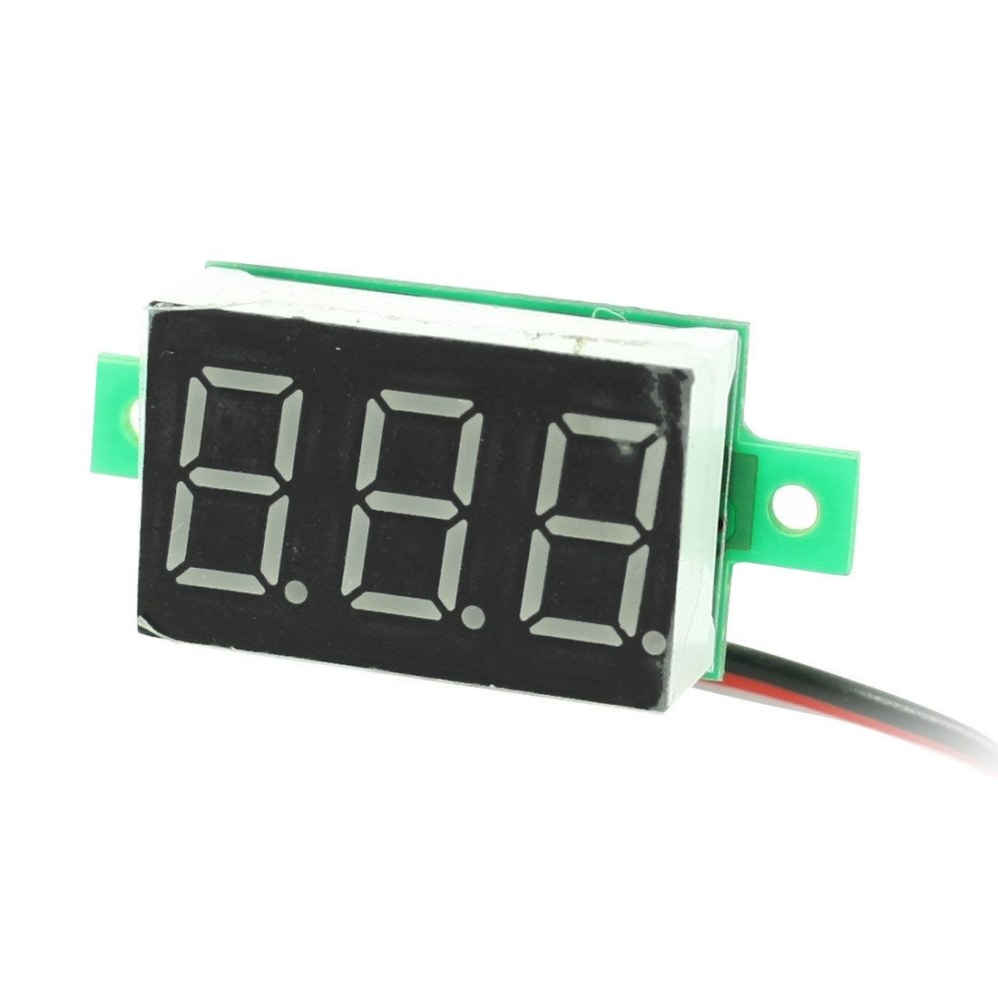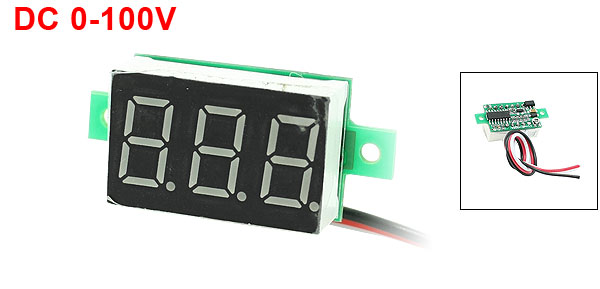 Product Name LED Voltmeter Display 3 Digits 7 Segments Red LED Voltage Range DC 0-100V Zero Seting Auto Body Size 23 x 14 x 10mm/0.9" x 0.55" x 0.4"(L*W*T) Mounting Hole Size 1.8mm/0.07" Mounting Hole Center Distance 28mm/1.1" Cable Length 16cm / 6.3" Casing Material Plastic Color Black Net Weight 6g Package Content 1 x LED Voltmeter - Reviews